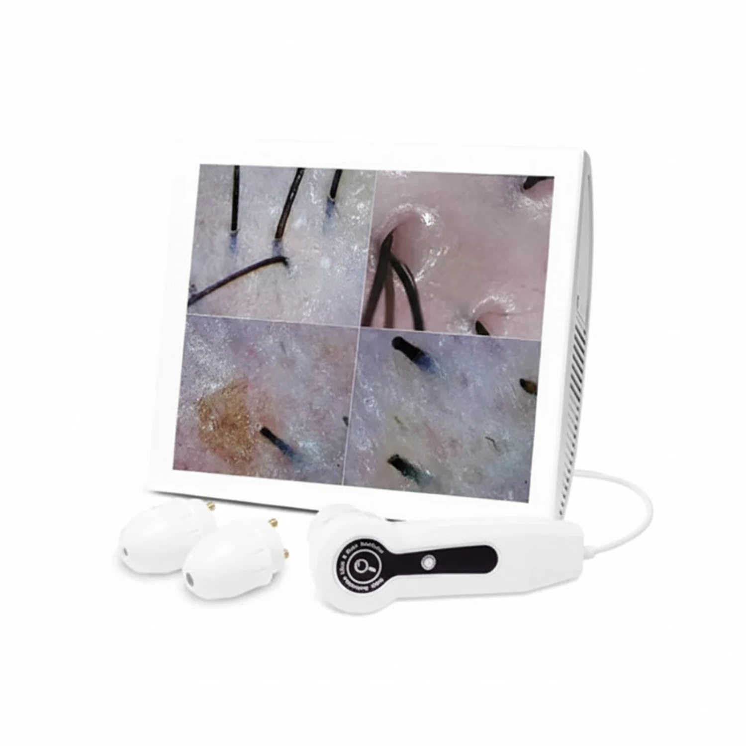 دستگاه آنالیزور پوست و مو سایز 15 اینچ UV دار با فناوری هوش مصنوعی، تمامی مشکلات پوست و مو اعم از منافذ، چربی، چین و چروک، خشکی و زبری پوست، و حتی انگلها و باکتریهای مو را شناسایی کرده و تحلیل دقیق ارائه میدهد.