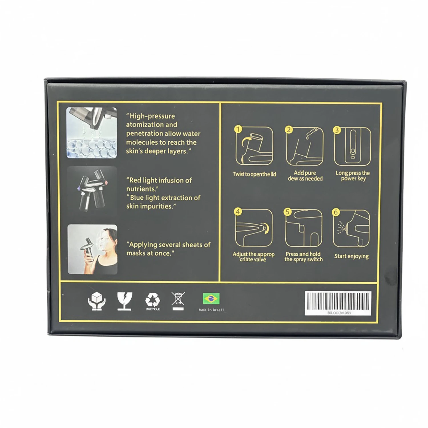 دستگاه دارای مخزن مخصوص برای انواع محلولها، سرمها و روغنهای درمانی است و با فناوری نانو قطرات آب یا روغن را به ذرات 0.26 نانومتر تبدیل میکند تا مستقیماً به کوتیکول و کورتکس مو و لایههای اپیدرم پوست نفوذ کند. این فرایند باعث آبرسانی عمقی، ترمیم موهای آسیبدیده و جذب چند برابری مواد مغذی میشود.