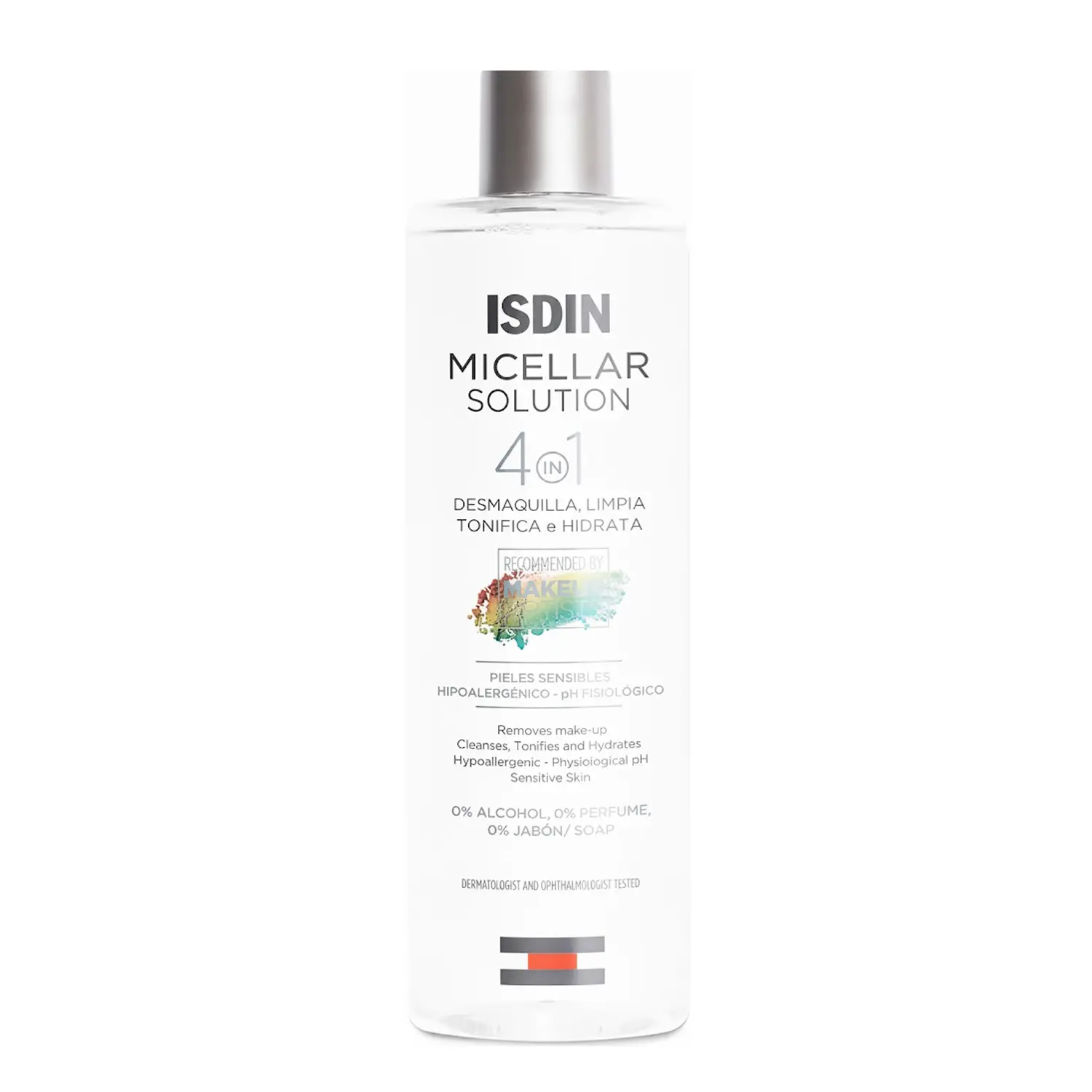 محلول میسلار 4 در 1 ایزدین مناسب پوست حساس از برند معتبر ISDIN یک محلول پاک کننده ملایم با فناوری میسلار است که در یک مرحله، ۴ عملکرد اصلی را انجام میدهد: