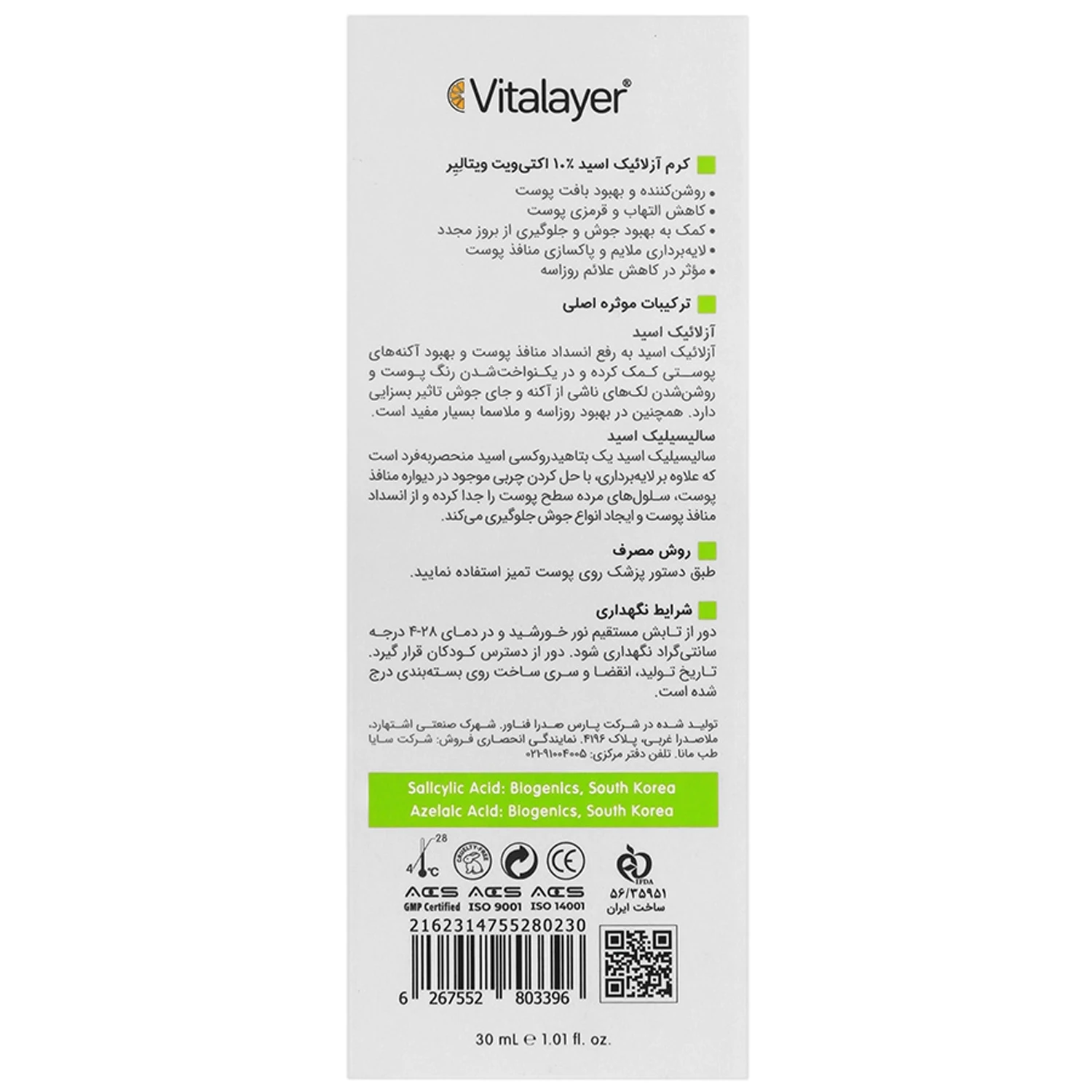 نام محصول: کرم آزلائیک اسید ۱۰٪ اکتیویت ویتالیر