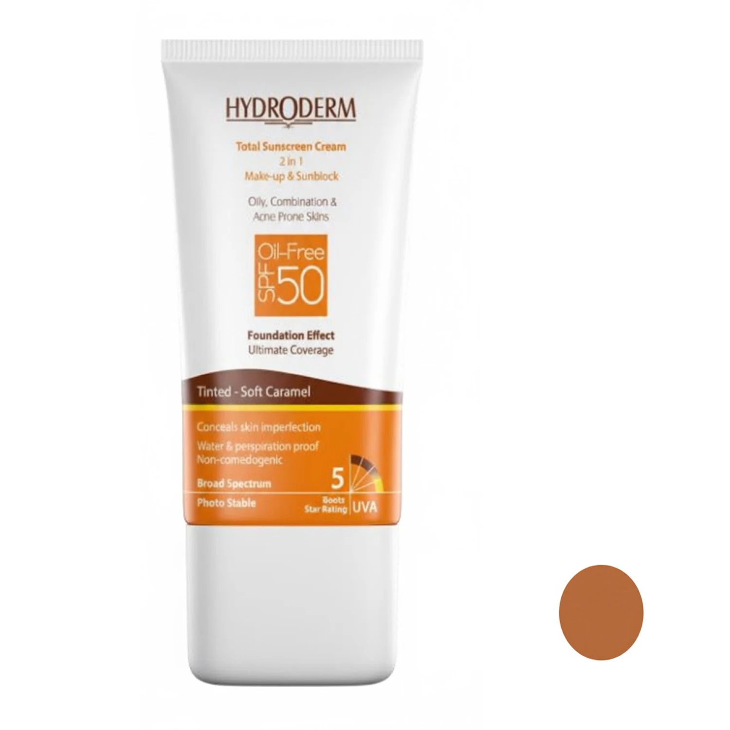 کرم ضد آفتاب کرم پودری توتال هیدرودرم با SPF50 ، یک محصول ۲ در ۱ است که هم عملکرد ضدآفتاب دارد و هم جایگزین کرمپودر روزانه میشود.