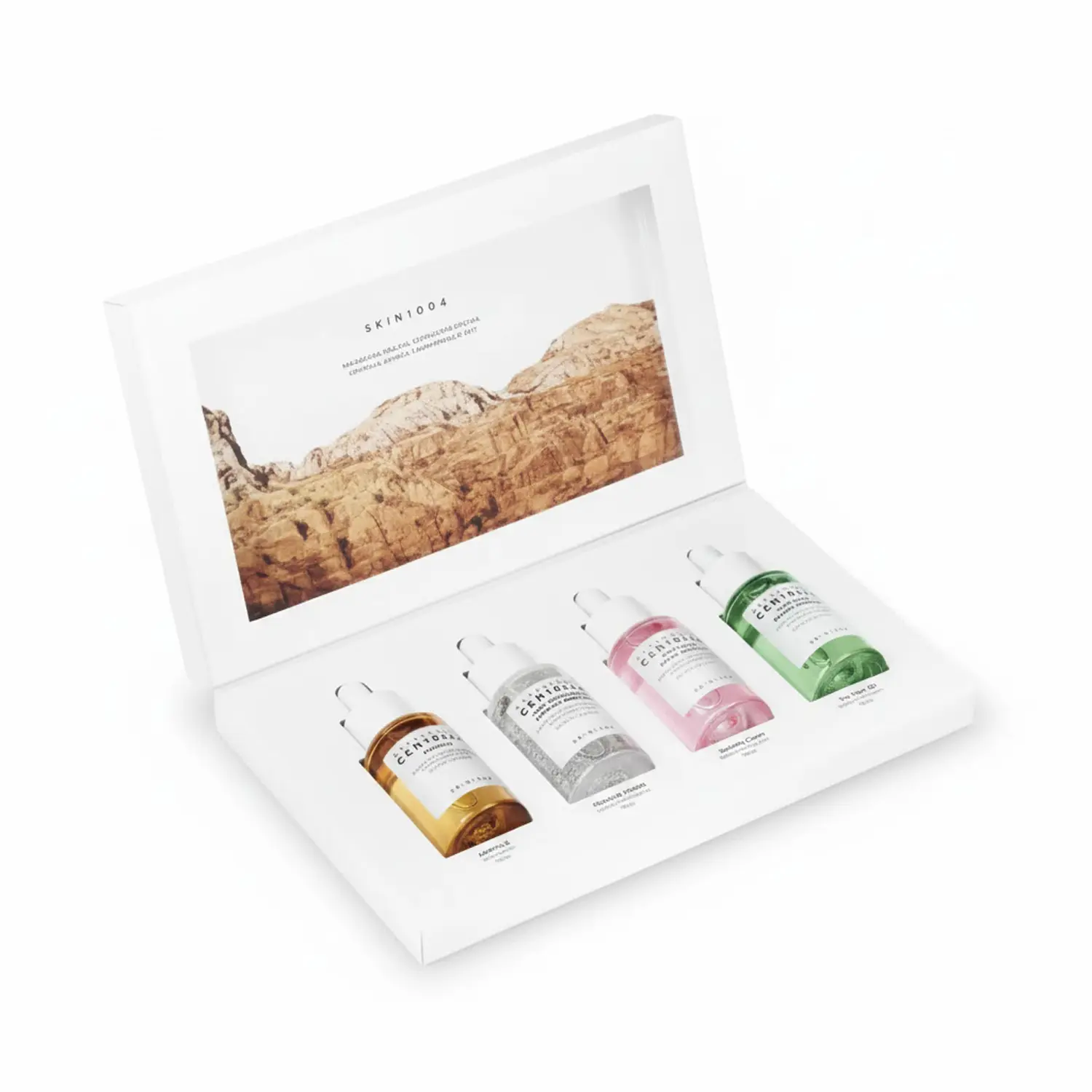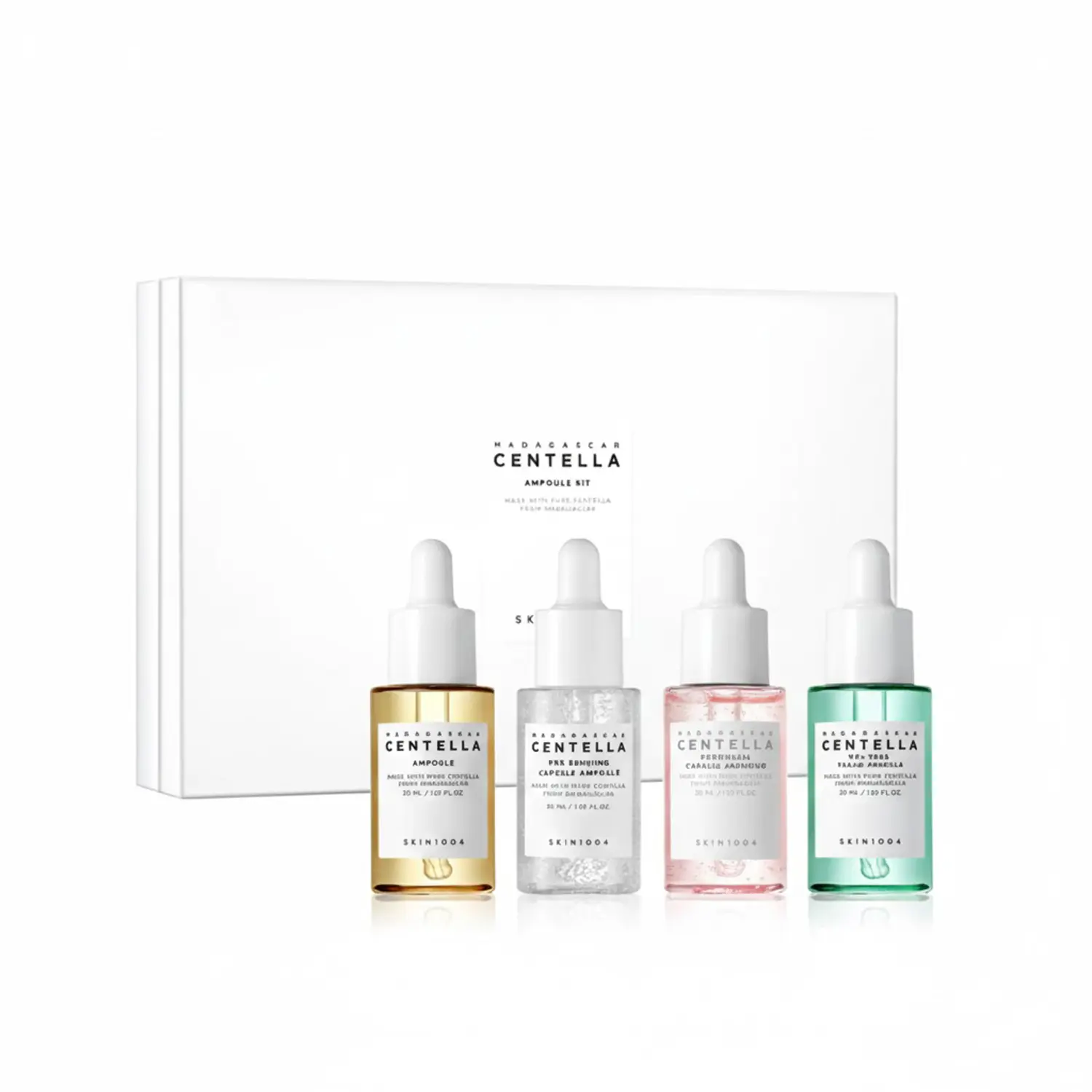 کیت آمپول ماداگاسکار سنتلا اسکین 1004 از برند معتبر SKIN1004 شامل چهار آمپول تخصصی است که هر کدام عملکرد منحصر به فردی برای مراقبت از پوست دارند: