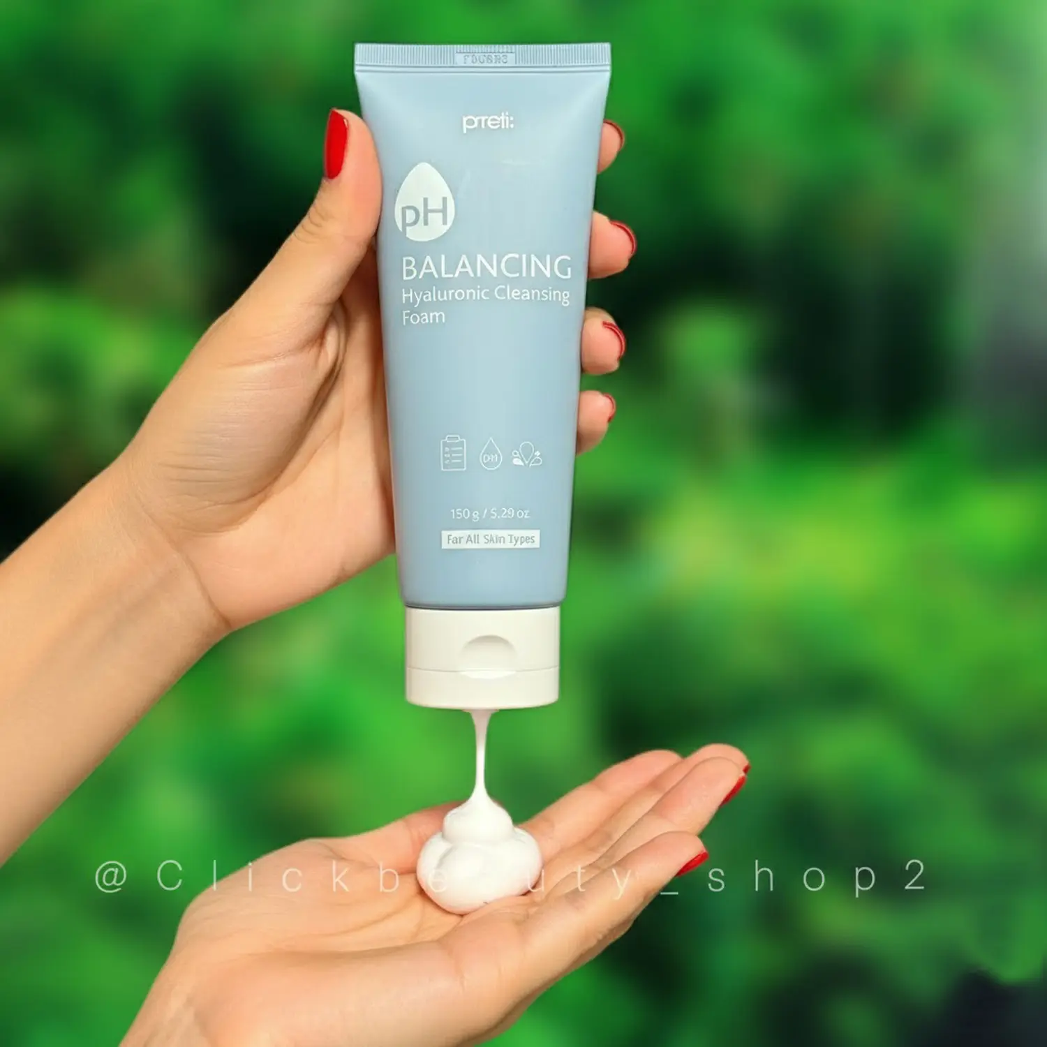 فوم شستشوی هیالورونیک و تنظیم کننده PH پوست پرتی 150 گرم | Prreti PH Balancing Hyaluronic Cleansing Foam 150g با فرمولاسیون ویژه و وگان خود، به پاکسازی عمقی پوست از سبوم اضافه و آلایندهها کمک میکند، PH پوست را متعادل میکند و با 10 لایه هیالورونیک اسید، آبرسانی عمیق و محافظت از چربی طبیعی پوست را تضمین میکند.